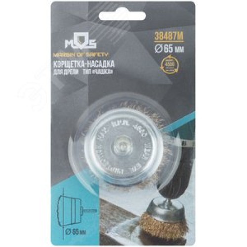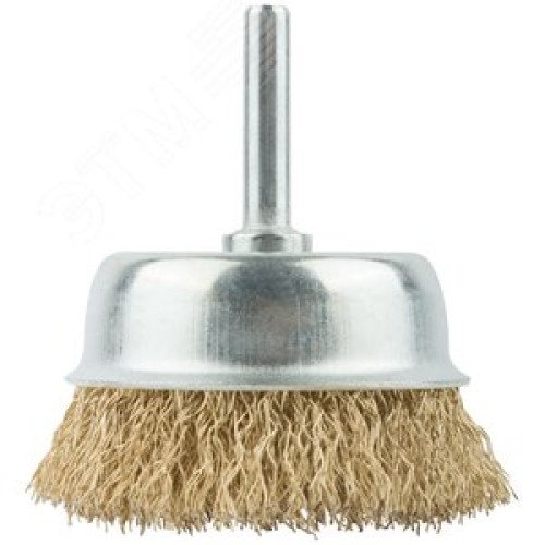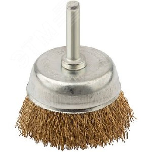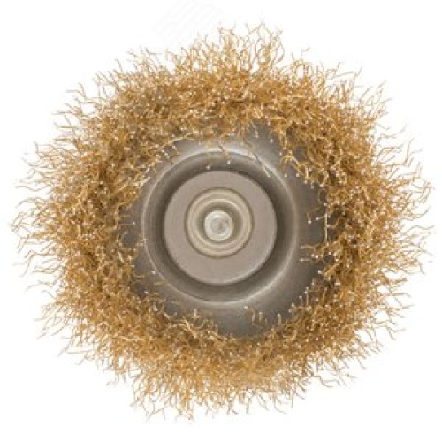 Кордщетка, тип ''чашка'', со штифтом, стальная латунированная волнистая проволока 65 мм