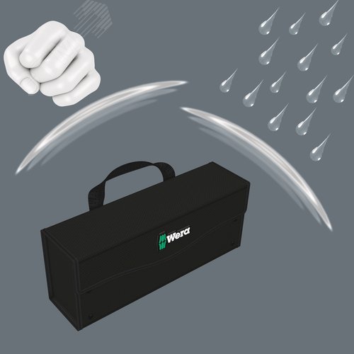 Дополнительная информация 1 прочный, сохраняющий форму бокс для инструментов, неукомплектованный, с ручкой для переноски, для хранения и переноски инструментов и мелких деталей. С зоной на липучках для прикрепления к компонентам системы Wera 2go. Отличается высокой устойчивостью к порезам и проколам. 80.0x130.0x325.0