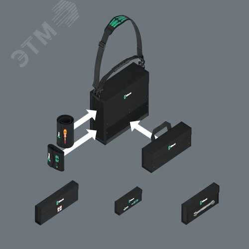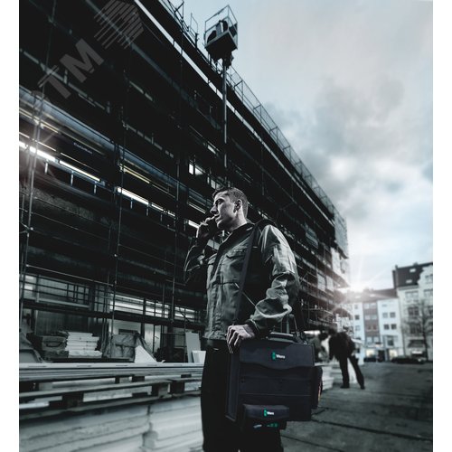 Дополнительная информация 1 прочный, сохраняющий форму контейнер для инструментов, с зоной на липучках, для прикрепления компонентов системы Wera 2go, а также мягких футляров и сумок Wera, снабжённых липучками, 1 ручка для переноски и 1 наплечный ремень для переноски, съёмный, с регулировкой по длине, с широкой передвигаемой мягкой накладкой. 1 подсумок с ручкой для переноски и видоизменяемым разделителем на липучках для получения до 5 внутренних карманов. Отличается высокой устойчивостью к порезам и проколам. 1 x 355.0x330.0x115.0, 1 x 38.0x1470.0, 1 x 105.0x165.0