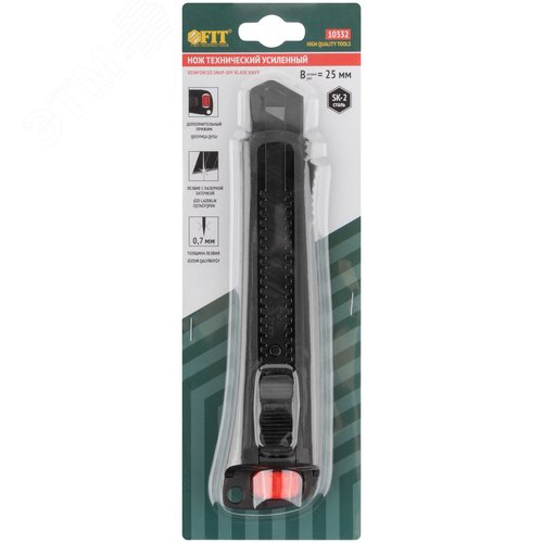 Нож технический 25 мм усиленный прорезиненный, дополнит. пластиковый прижим, черный, Профи