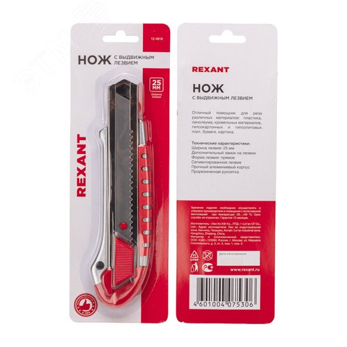 Нож с сегмент лезвием 25мм, металл обрезин корпус, с доп замком на лезвии