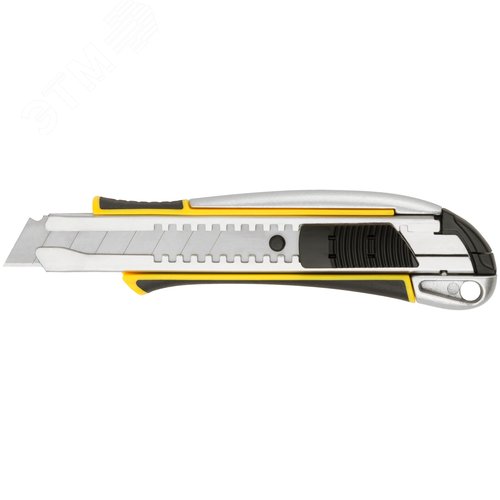 Нож технический 18 мм усиленный прорезиненный, 2-х сторонняя автофиксация, металл. корпус, Профи