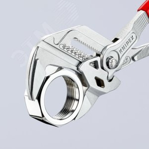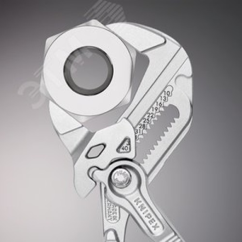 Дополнительная информация Гладкие губки для бережного монтажа арматуры с высококачественной отделкой поверхностей - работа непосредственно с хромированными деталями. Заменяют полный набор гаечных ключей, как метрических, так и дюймовых. Для захвата, фиксации, опрессовки и гибки деталей. При монтаже деталей с высококачественной отделкой они не повреждаются благодаря плотному прилеганию губок ключа по всей поверхности. Быстрая настройка раствора губок непосредственно на детали одним нажатием кнопки. Случайное изменение раствора губок исключается. Бесступенчатая установка размера ключа за счет параллельного хода губок. Зазор между захватными плоскостями обеспечивает быструю работу с винтовыми соединениями по принципу трещотки. 10-кратное увеличение усилия. CrV сталь. Переставные мини-клещи для точной механики. Оптимальны для работы с мелкими резьбовыми соединениями. Удобная работа даже в условиях нехватки места.