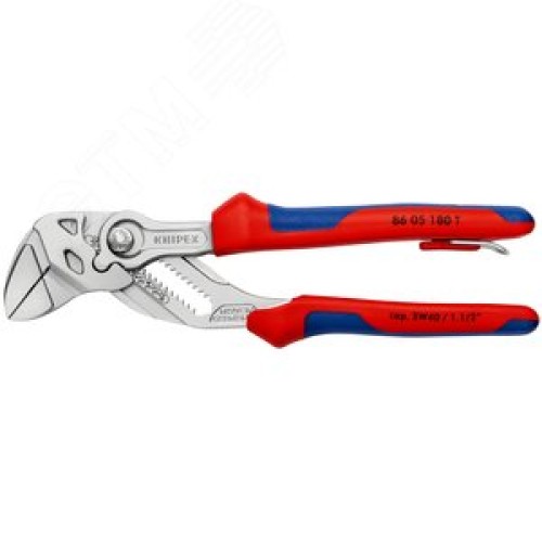 Клещи переставные - гаечный ключ 40 мм (1 1/2) L-180 мм Cr-V хромированные 2-компонентные рукоятки крепление для страховки блистер