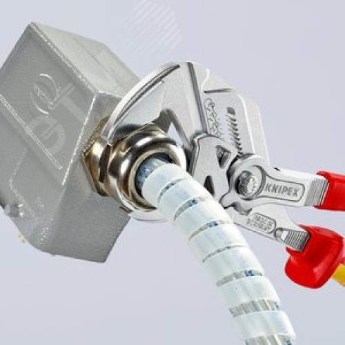 Дополнительная информация Гладкие губки для бережного монтажа арматуры с высококачественной отделкой поверхностей - работа непосредственно с хромированными деталями. Заменяют полный набор гаечных ключей, как метрических, так и дюймовых. Для захвата, фиксации, опрессовки и гибки деталей. Гладкие губки для бережного монтажа арматуры с высококачественной отделкой поверхностей - работа непосредственно с хромированными деталями. Плотное прилегание губок по всей поверхности исключает повреждение деталей. Быстрая настройка раствора губок непосредственно на детали одним нажатием кнопки. Случайное изменение установки захватных губок и проскальзывание шарнира исключаются. Бесступенчатая установка нужного размера ключа в рабочем диапазоне за счет параллельного хода губок. Зазор между захватными плоскостями обеспечивает быструю работу с винтовыми соединениями по принципу трещотки. 10-кратное увеличение усилия. CrV сталь