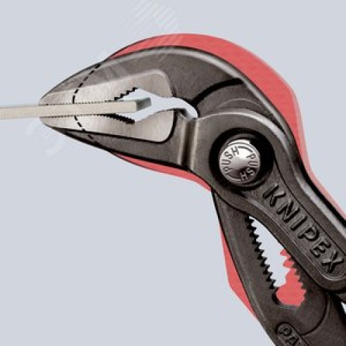 Дополнительная информация Доступ к детали благодаря удлиненной форме во всей зоне головки и шарнира. Длинные, тонкие губки. Идеальный вариант для обслуживания и ремонта приборов, автомобилей, промышленного оборудования. Точная регулировка одной рукой непосредственно на детали нажатием кнопки в 19 позициях обеспечивает оптимальную настройку на различные размеры деталей и удобное положение ручек. Надежная фиксация винта шарнира: случайная перестановка исключена. Коробчатый шарнир: высокая стабильность благодаря двум направляющим. Надежный захват плоских деталей благодаря трехточечной опоре. Функция смыкания губок, которая облегчает работу в узких и труднодоступных местах. Захватные губки со специально закаленными зубцами твердостью примерно 61 HRC: надежный захват - надолго!. Выгода применения рычага: оптимальная передача усилия. Специальный механизм предотвращает защемление пальцев. CrV сталь