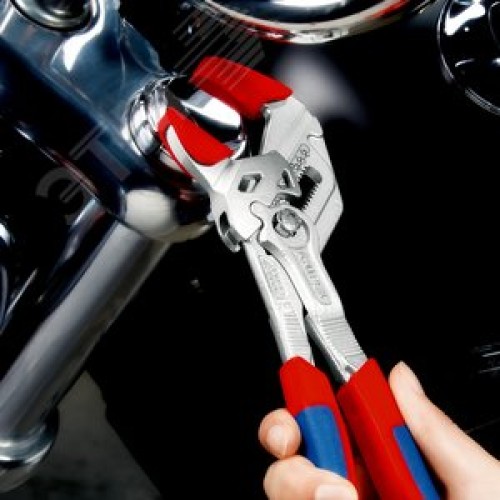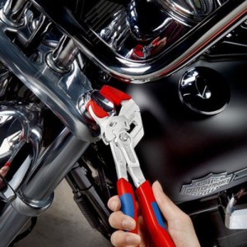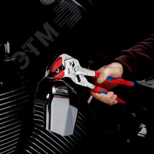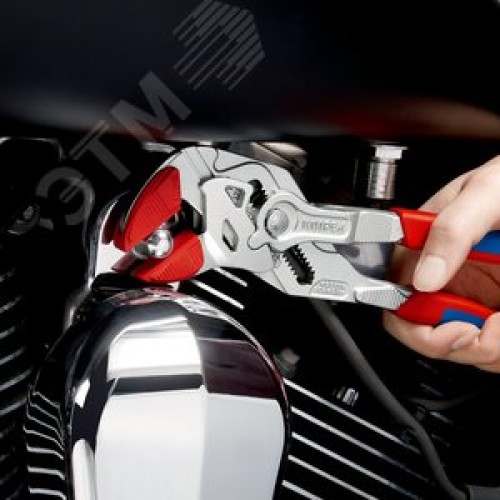 Дополнительная информация Гладкие губки для бережного монтажа арматуры с высококачественной отделкой поверхностей - работа непосредственно с хромированными деталями. Заменяют полный набор гаечных ключей, как метрических, так и дюймовых. Для захвата, фиксации, опрессовки и гибки деталей. Гладкие губки для бережного монтажа арматуры с высококачественной отделкой поверхностей - работа непосредственно с хромированными деталями. Плотное прилегание губок по всей поверхности исключает повреждение деталей. Быстрая настройка раствора губок непосредственно на детали одним нажатием кнопки. Случайное изменение установки захватных губок и проскальзывание шарнира исключаются. Бесступенчатая установка нужного размера ключа в рабочем диапазоне за счет параллельного хода губок. Зазор между захватными плоскостями обеспечивает быструю работу с винтовыми соединениями по принципу трещотки. 10-кратное увеличение усилия. CrV сталь