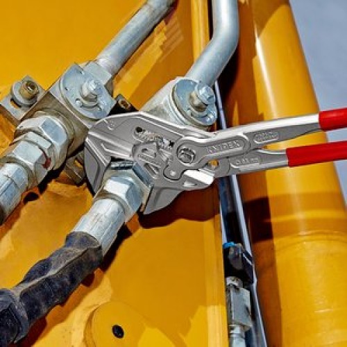 Дополнительная информация Гладкие губки для бережного монтажа арматуры с высококачественной отделкой поверхностей - работа непосредственно с хромированными деталями. Заменяют полный набор гаечных ключей, как метрических, так и дюймовых. Для захвата, фиксации, опрессовки и гибки деталей. Гладкие губки для бережного монтажа арматуры с высококачественной отделкой поверхностей - работа непосредственно с хромированными деталями. Плотное прилегание губок по всей поверхности исключает повреждение деталей. Быстрая настройка раствора губок непосредственно на детали одним нажатием кнопки. Случайное изменение установки захватных губок и проскальзывание шарнира исключаются. Бесступенчатая установка нужного размера ключа в рабочем диапазоне за счет параллельного хода губок. Зазор между захватными плоскостями обеспечивает быструю работу с винтовыми соединениями по принципу трещотки. 10-кратное увеличение усилия. CrV сталь