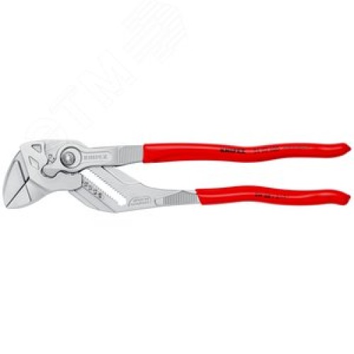 Дополнительная информация Гладкие губки для бережного монтажа арматуры с высококачественной отделкой поверхностей - работа непосредственно с хромированными деталями. Заменяют полный набор гаечных ключей, как метрических, так и дюймовых. Для захвата, фиксации, опрессовки и гибки деталей. Гладкие губки для бережного монтажа арматуры с высококачественной отделкой поверхностей - работа непосредственно с хромированными деталями. Плотное прилегание губок по всей поверхности исключает повреждение деталей. Быстрая настройка раствора губок непосредственно на детали одним нажатием кнопки. Случайное изменение установки захватных губок и проскальзывание шарнира исключаются. Бесступенчатая установка нужного размера ключа в рабочем диапазоне за счет параллельного хода губок. Зазор между захватными плоскостями обеспечивает быструю работу с винтовыми соединениями по принципу трещотки. 10-кратное увеличение усилия. CrV сталь