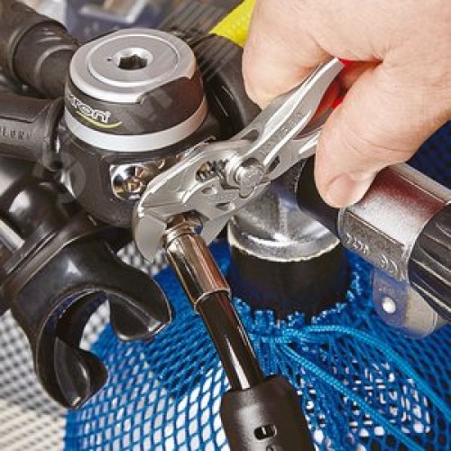 Дополнительная информация Гладкие губки для бережного монтажа арматуры с высококачественной отделкой поверхностей - работа непосредственно с хромированными деталями. Заменяют полный набор гаечных ключей, как метрических, так и дюймовых. Для захвата, фиксации, опрессовки и гибки деталей. При монтаже деталей с высококачественной отделкой они не повреждаются благодаря плотному прилеганию губок ключа по всей поверхности. Быстрая настройка раствора губок непосредственно на детали одним нажатием кнопки. Случайное изменение раствора губок исключается. Бесступенчатая установка размера ключа за счет параллельного хода губок. Зазор между захватными плоскостями обеспечивает быструю работу с винтовыми соединениями по принципу трещотки. 10-кратное увеличение усилия. CrV сталь. Переставные мини-клещи для точной механики. Оптимальны для работы с мелкими резьбовыми соединениями. Удобная работа даже в условиях нехватки места.