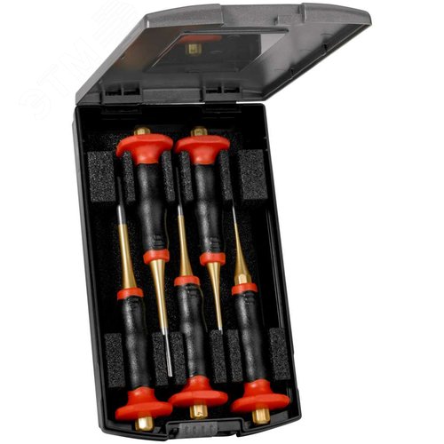 Набор выколоток Standard DIN 6450 с 2К ручкой, 5 предметов (2/3/4/5/6 мм), Cr-V, золотистые, пластиковый кейс