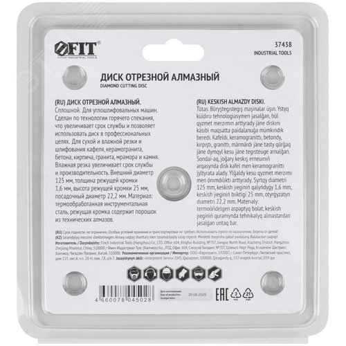 Диск отрезной / шлифовальный алмазный (сухая и влажная резка)  125х1,6х25х22,2 мм