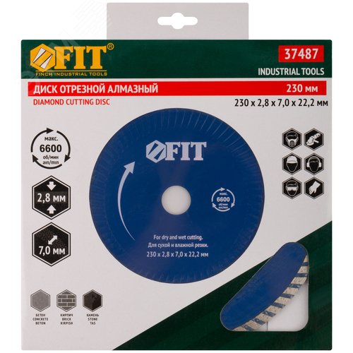 Диск отрезной алмазный ''Турбо-волна'' (сухая и влажная резка) 230х2.8х7х22.2 мм
