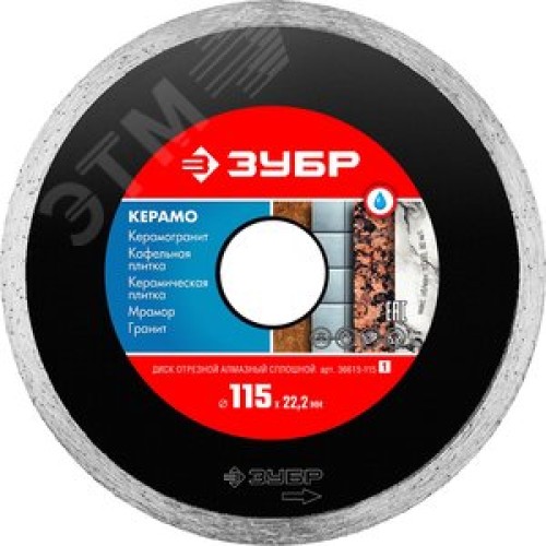 Диск алмазный отрезной сплошной по керамограниту КЕРАМО-22 115 мм, мрамору, плитке,
