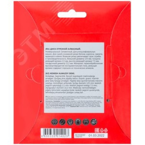 Диск отрезной алмазный сегментный (сухая и влажная резка) 125х2.0х7.0х22.2 мм