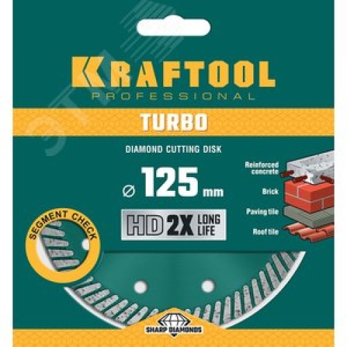 Диск алмазный отрезной сегментированный по армированному бетону, кирпичу, TURBO 125 мм