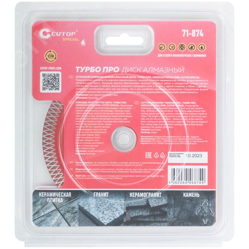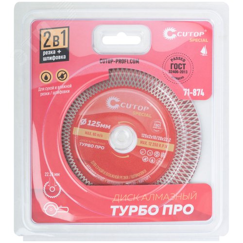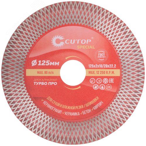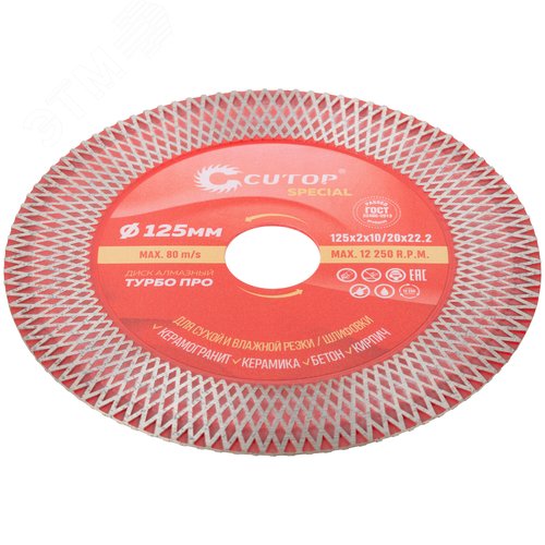 Профессиональный алмазный диск отрезной / шлифовальный по керамограниту, плитке и камню, Турбо Про, Special, 125x2x10/20x22,2 мм