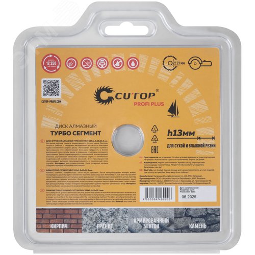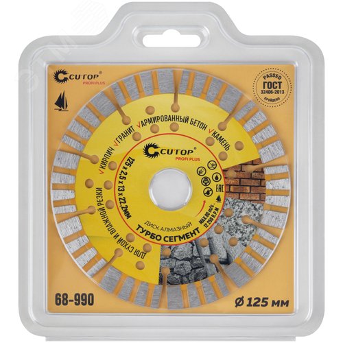 Диск отрезной алмазный Турбо Сегмент, profi plus, 125х2,5х13х22,2мм