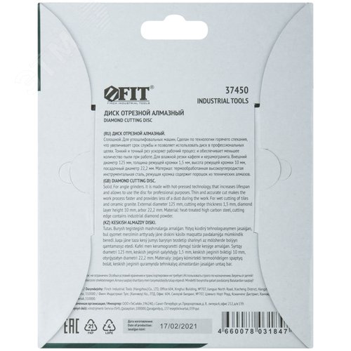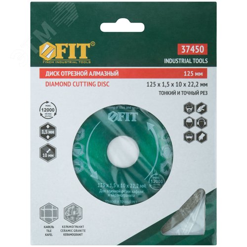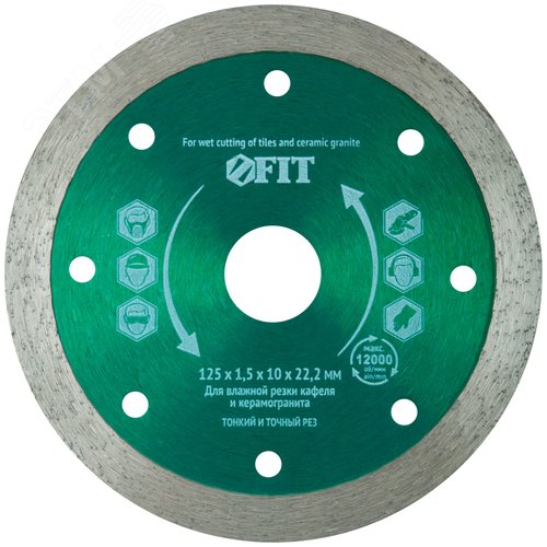 Диск отрезной алмазный сплошной (влажная резка), для кафеля и керамогранита, 125х1.5х10х22.2 мм