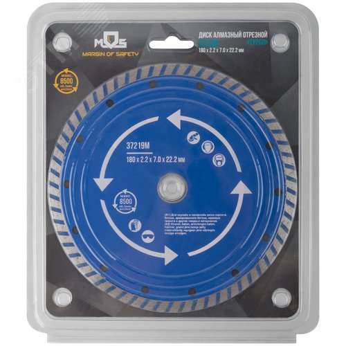 Диск отрезной алмазный ''турбо'' (сухая и влажная резка) 180х2.2х7.0х22.2 мм