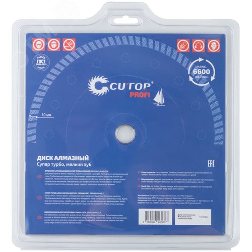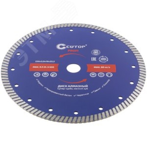 Диск отрезной алмазный сверхтонкий, супер-турбо, мелкий зуб , 230X3.0X10X22.2 мм