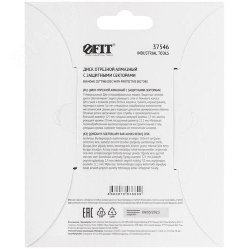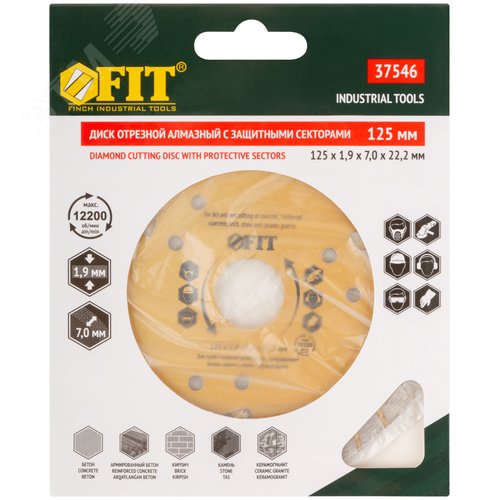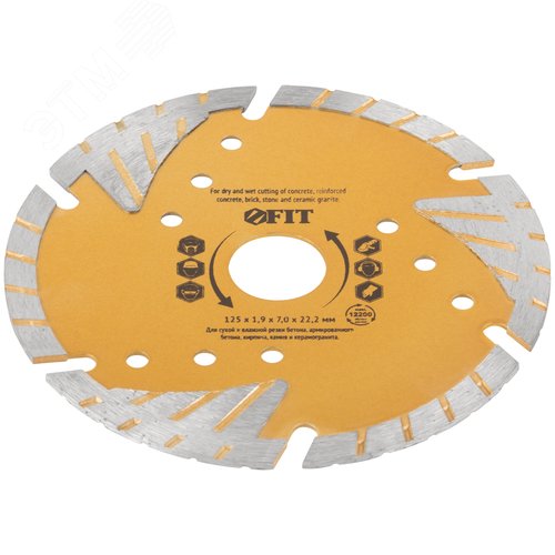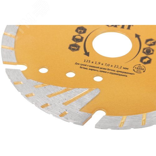 Диск отрезной алмазный универсальный с защитными секторами (сухая и влажная резка) 125х1.9х7х22.2 мм