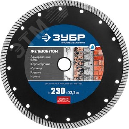 Диск алмазный отрезной сегментированный по железобетону, армированному бетону ЖЕЛЕЗОБЕТОН 230 мм, Профессионал