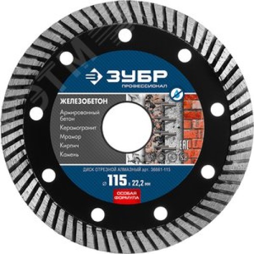 Диск алмазный отрезной сегментированный по железобетону, армированному бетону ЖЕЛЕЗОБЕТОН 115 мм, Профессионал