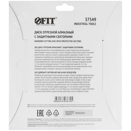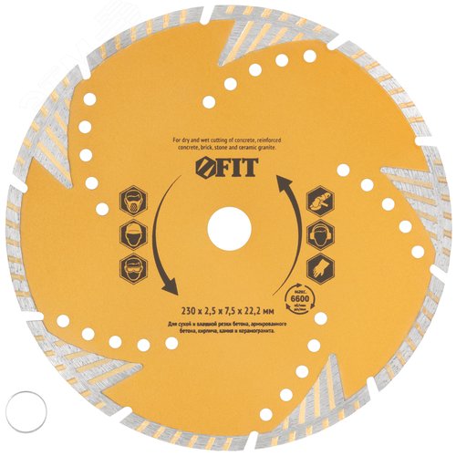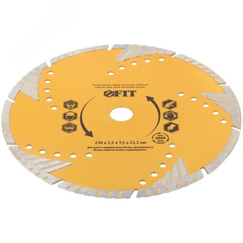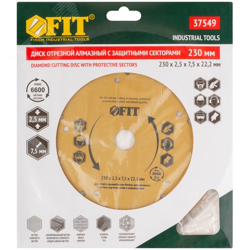 Диск отрезной алмазный универсальный с защитными секторами (сухая и влажная резка) 230х2.5х7.5х22.2 мм