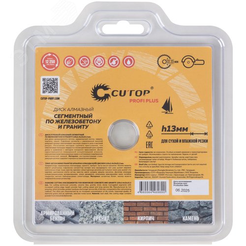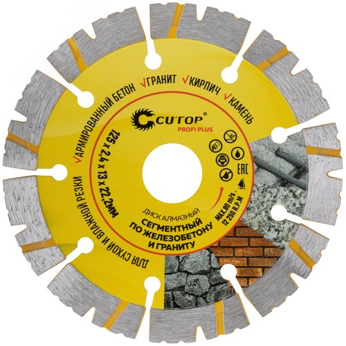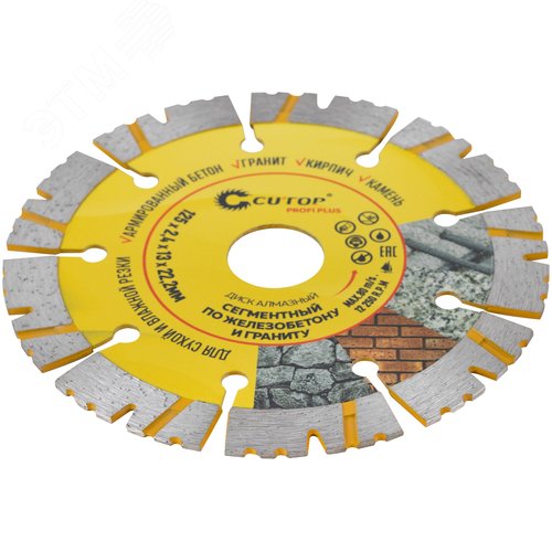 Диск отрезной алмазный Сегментный по железобетону и граниту, profi plus, 125х2,4х13х22,2мм