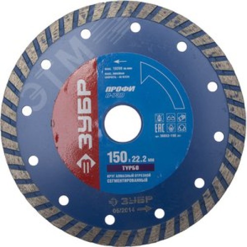 Диск алмазный отрезной по бетону, кирпичу, граниту, Т-730 ТУРБО 150 мм, Профессионал