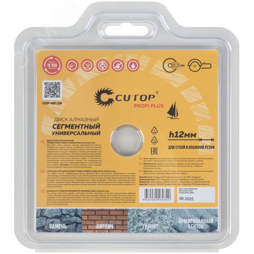 Диск отрезной алмазный Сегментный Универсальный, profi plus, 125х2,3х12х22,2мм
