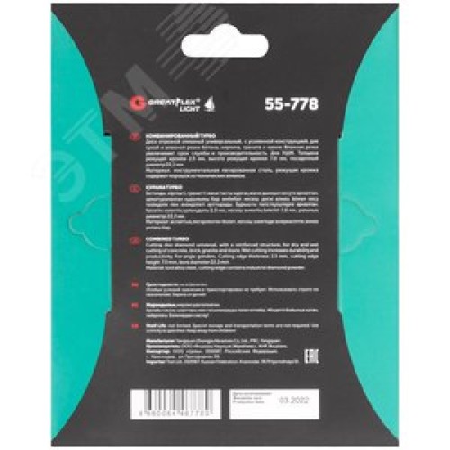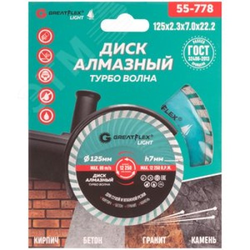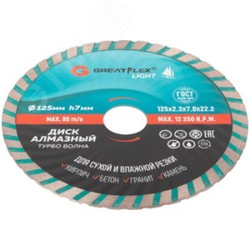 Диск отрезной алмазный Турбо волна GreatFlex Light, 125X2.3X7.0X22.2 мм