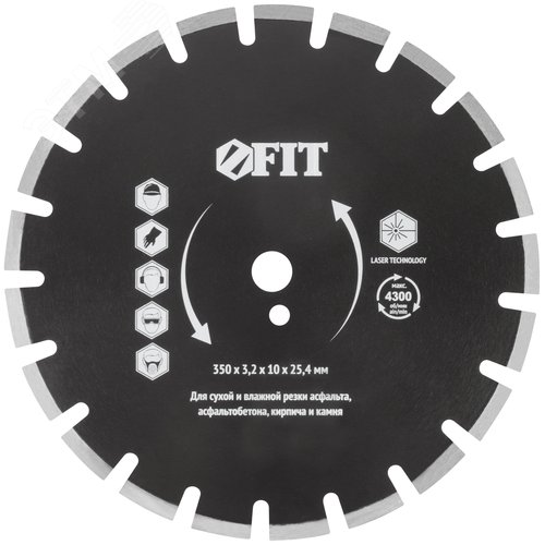 Диск отрезной алмазный cегментный (сухая и влажная резка), для асфальта, асфальтобетона, кирпича 350х3.2х10х25.4 мм