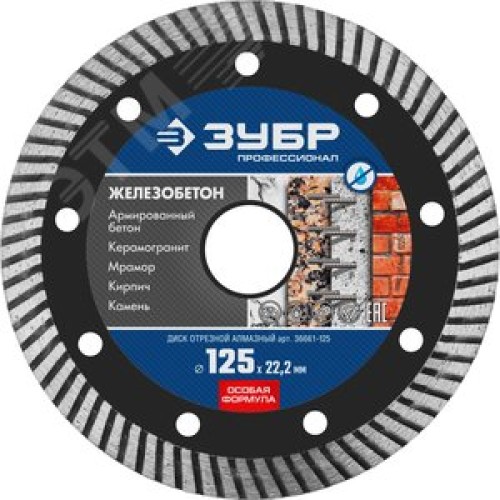 Диск алмазный отрезной сегментированный по железобетону, армированному бетону ЖЕЛЕЗОБЕТОН 125 мм, Профессионал