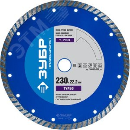 Диск алмазный отрезной по бетону, кирпичу, граниту, Т-730 ТУРБО 230 мм, Профессионал