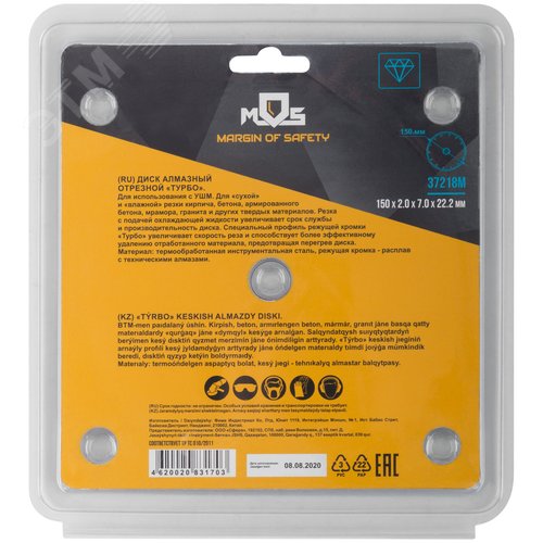 Диск отрезной алмазный ''турбо'' (сухая и влажная резка) 150х2.0х7.0х22.2 мм