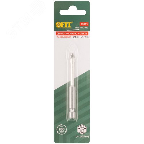 Сверло по кафелю, шестигранный U-хвостовик под биту 5 мм
