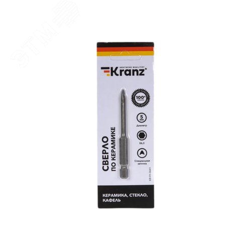 Сверло по стеклу и керамике 5 мм, 2 грани, шестигранный хвостовик