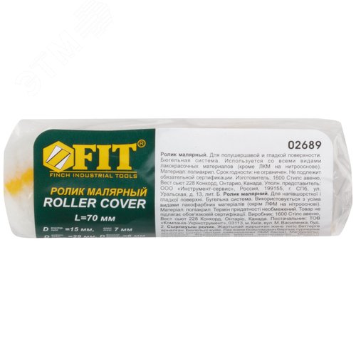 Ролик полиакриловый сменный ''Мини'', диаметр 15/29 мм, ворс 7 мм, 70 мм