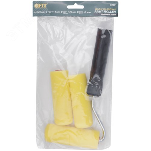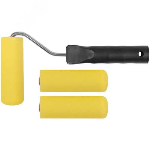 Валик поролоновый желтый с ручкой ''мини'' 100 мм + 2 сменных ролика