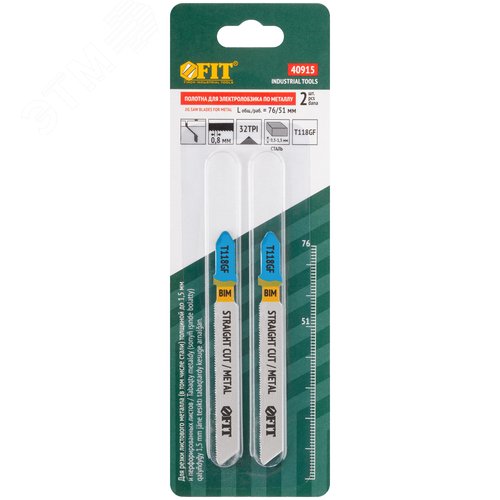 Полотна по металлу, Bimetal, фрезерованные, волнистые зубья, 76/51/0,8 мм (T118GF), 2 шт.
