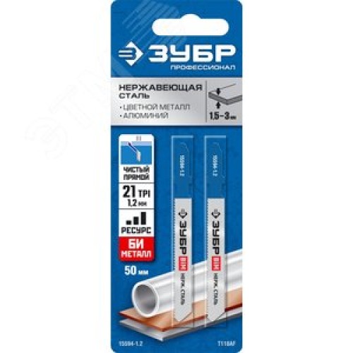 Полотна для эл/лобзика, T118AF, Би-металл, по металлу, Т-хвостовик, шаг 1, 2мм, 50мм, 2шт.
