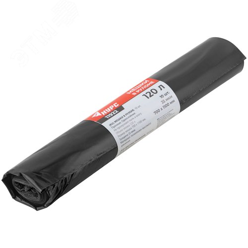 Мешки для строительного мусора, ПВД прочные, 120 л, 700х1100 мм, толщина 35 мкм, 10 шт.