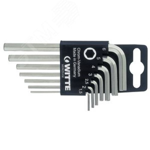 Комплектация Ключ шестигранный HEX 1,5 - 1 шт, ключ шестигранный HEX 2,0 - 1 шт, ключ шестигранный HEX 2,5 - 1 шт, ключ шестигранный HEX 3,0 - 1 шт, ключ шестигранный HEX 4,0 - 1 шт, ключ шестигранный HEX 5,0 - 1 шт, ключ шестигранный HEX 6,0 - 1 шт, пластиковый держатель - 1 шт