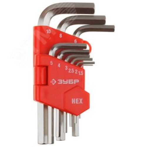 Набор ключей ''Мастер'' имбусовые короткие, Cr-V, сатинированное покрытие, пластиковый держатель, HEX 1,5-10мм, 9 пред