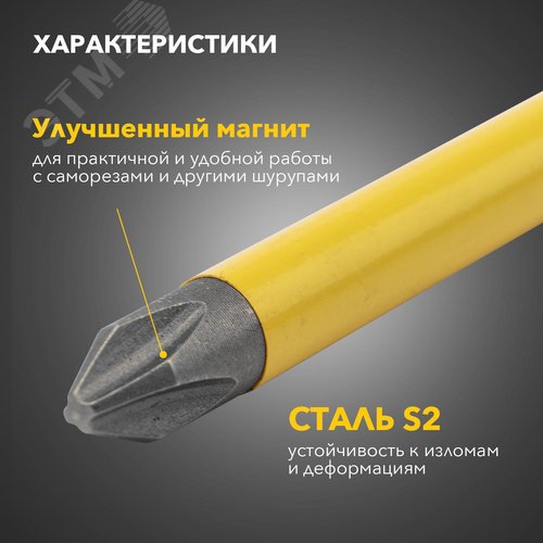 Дополнительная информация благодаря хвостовику такая бита подойдет для установки на все виды шуруповертов и отверток-адаптеров