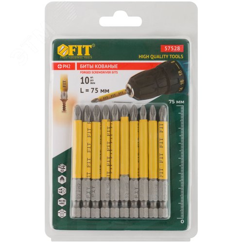 Биты кованые сталь S2 односторонние 75 мм PH2 Профи 10 шт блистер