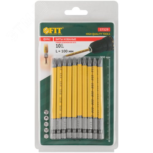Биты кованые сталь S2 односторонние 100 мм PH2 Профи 10 шт блистер