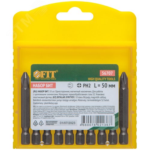 Биты односторонние 10шт., сталь S2, РН 2 х 50 мм